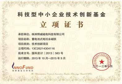 通過國(guó)家高新技術(shù)企業(yè)認(rèn)證;獲得國(guó)家科技型中小企業(yè)技術(shù)創(chuàng)新基金資助; 國(guó)內(nèi)首套40噸吊鋼坯用電永磁吊具成功出口南美.